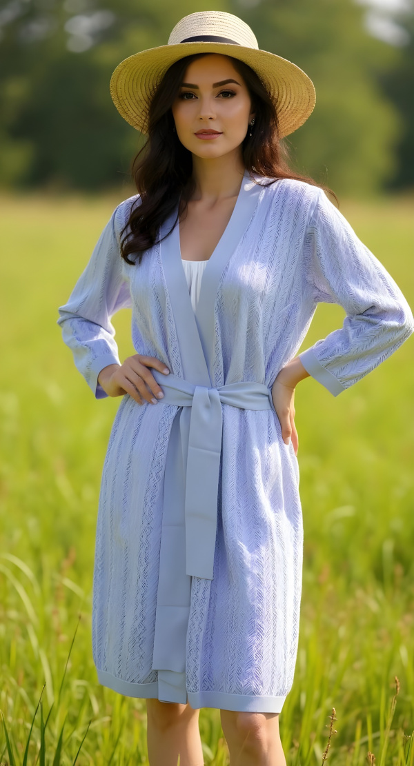 Cashmere, silk and cotton short robe 38", long and relaxed sleeve, loops and loose belt.