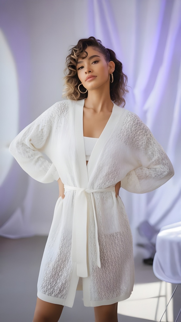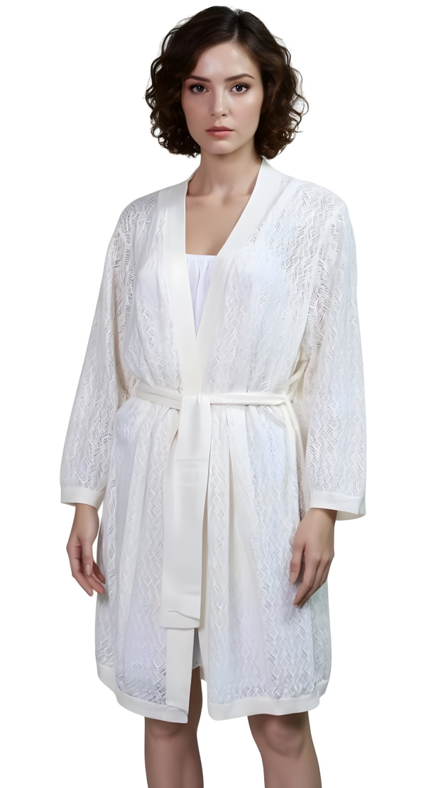 Cashmere, silk and cotton short robe 38", long and relaxed sleeve, loops and loose belt.